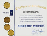 В 1999 году фирма Aquafilter стала членом Water Quality Association, в состав которой входят самые значительные фирмы отрасли очистки воды. Продукты с лого WQA это изделия наивысшего качества, соответствующие мировым стандартам и этичному кодексу Code of Ethics WQA , протестированы и произведены на предприятиях, где фирменный персонал обучается лучшими мировыми специалистами в области очистки воды.