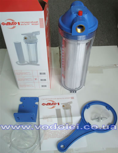 Размеры: 2,5" × 10" (диаметр × высота) - 63 мм × 250 мм. Цвет корпуса - прозрачный. Присоединительные размеры 1/2".