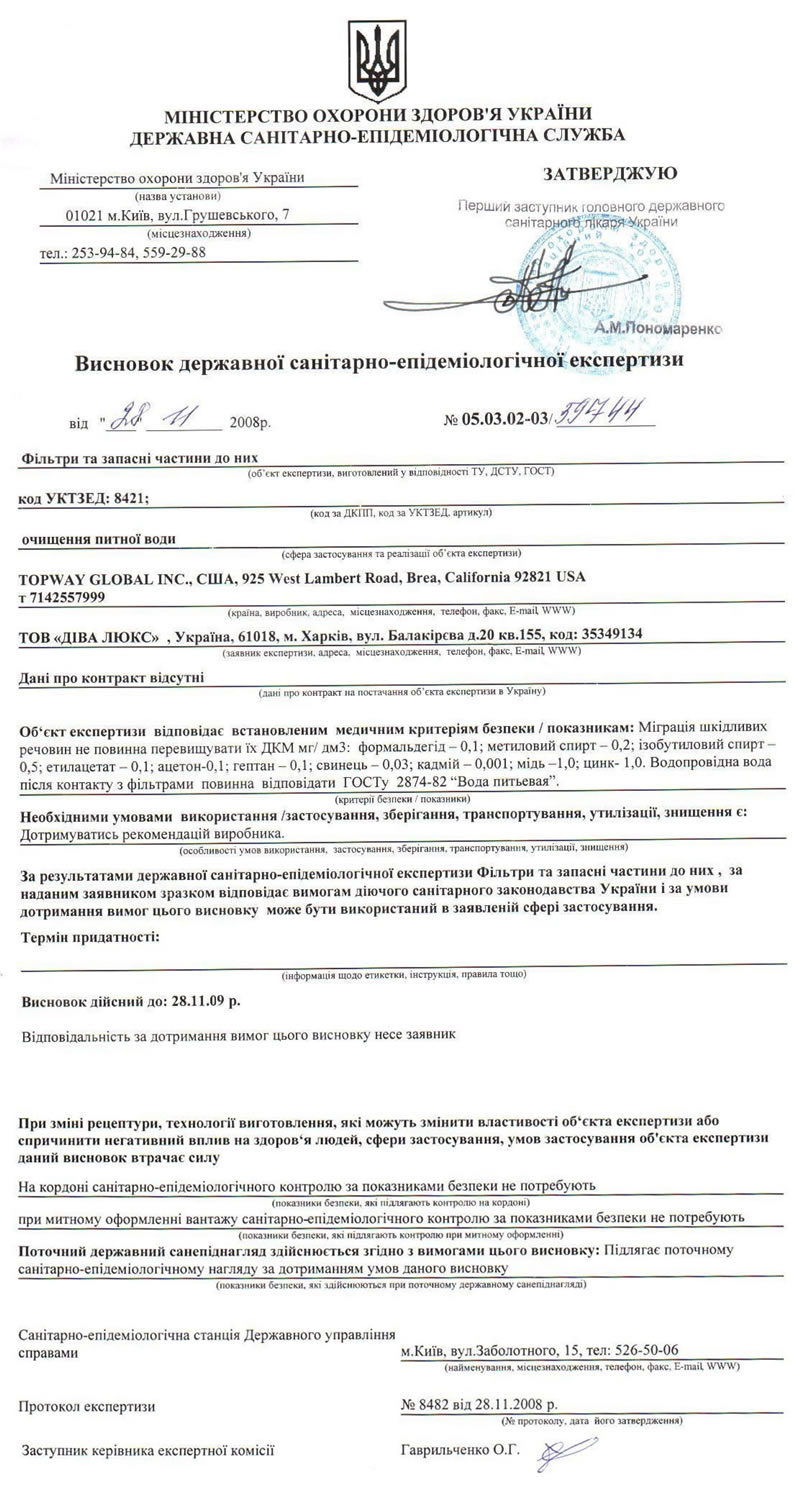 Эффективность очистки по некоторым показателям: Тип загрязнения | Степень очистки | Тип загрязнения | Степень очистки | Жесткость | 98% | Дихлорэтан | 99% | Асбест | 99,99% | Тетрахлорэтилен | 99% | Цисты | 99,99% | Стерин | 99% | Бактерии | 99,99% | Пестициды | 98% | Медь | 99% | Гербициды | 98% | Хром | 97% | Тяжелые металлы | 99% | Свинец | 99% | Железо | 99% | Свинец | 99% | Цианиды | 98% | Барий | 96% | Мышьяк | 98% | Селениты | 92% | Сульфаты | 99% | Радий | 80% | Органические соединения | 99,99% | Бензин | 99% | Хлорбензол | 99% | Требования к качеству входящей воды: Параметр | Величина | Параметр | Величина | Жесткость (мг-экв/л) | <7 | Магний (мг/л) | <50 | рН | 3-10 | Железо (мг/л) | <0,3 | Минерализация (мг/л) | <1500 | Марганец (мг/л) | <0,1 | Хлориды, сульфаты (мг/л) | <900 | Перманганатная окисляемость (мг О2/л) | <5 | Хлор свободный (мг/л) | <0,5 | Общее микробное число (ед./мл) | <1 | Мутность (мг/л) | <1 | Coli-индекс | <3 | Кальций (мг/л) | <50 |