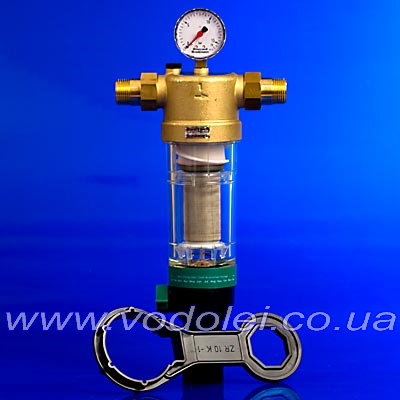 ПРИНЦИП ДЕЙСТВИЯ: Сетчатый вкладыш фильтра состоит из основной нижней и дополнительной верхней секции. В режиме фильтрации малая верхняя секция закрыта, и вода проходит через основную секцию в направлении снаружи внутрь. При открывании шарового клапана включается режим обратной промывки, при этом весь сетчатый вкладыш опускается вниз. В таком положении прекращается поступление воды к основной секции фильтра, и она начинает проходить через малую верхнюю секцию, где после очистки поток разделяется на два направления: одно – к потребителям воды, второе – для проведения очистки. Этот второй поток раскручивает турбину и, пройдя сквозь нее с ускорением, промывает нижнюю секцию сетчатого фильтра в направлении изнутри наружу. Таким образом, основная секция фильтра под полным впускным давлением полностью очищается по всей площади поверхности. После закрытия шарового клапана фильтр автоматически возвращается в режим фильтрации.  ИНСТРУКЦИЯ ПО МОНТАЖУ: - Можно монтировать как на металлические, так и на пластиковые трубы. - Устройство устанавливается на горизонтальном участке трубопровода чашей вниз. Это положение обеспечивает максимальную эффективность фильтрации. - Устанавливается за водосчетчиком после запорных клапанов в соответствии с требованиями DIN 1988, часть2. Это позволит обслуживать устройство без демонтажа из трубопровода. - Обеспечьте свободный доступ к фильтру для возможности отслеживания степени загрязнения через прозрачную чашу, контроля показаний манометра и проведения технического обслуживания. |