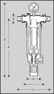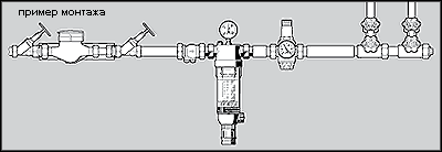 ПРИНЦИП ДЕЙСТВИЯ: Сетчатый вкладыш фильтра состоит из основной нижней и дополнительной верхней секции. В режиме фильтрации малая верхняя секция закрыта, и вода проходит через основную секцию в направлении снаружи внутрь. При открывании шарового клапана включается режим обратной промывки, при этом весь сетчатый вкладыш опускается вниз. В таком положении прекращается поступление воды к основной секции фильтра, и она начинает проходить через малую верхнюю секцию, где после очистки поток разделяется на два направления: одно – к потребителям воды, второе – для проведения очистки. Этот второй поток раскручивает турбину и, пройдя сквозь нее с ускорением, промывает нижнюю секцию сетчатого фильтра в направлении изнутри наружу. Таким образом, основная секция фильтра под полным впускным давлением полностью очищается по всей площади поверхности. После закрытия шарового клапана фильтр автоматически возвращается в режим фильтрации.  ИНСТРУКЦИЯ ПО МОНТАЖУ: - Можно монтировать как на металлические, так и на пластиковые трубы. - Устройство устанавливается на горизонтальном участке трубопровода чашей вниз. Это положение обеспечивает максимальную эффективность фильтрации. - Устанавливается за водосчетчиком после запорных клапанов в соответствии с требованиями DIN 1988, часть2. Это позволит обслуживать устройство без демонтажа из трубопровода. - Обеспечьте свободный доступ к фильтру для возможности отслеживания степени загрязнения через прозрачную чашу, контроля показаний манометра и проведения технического обслуживания.