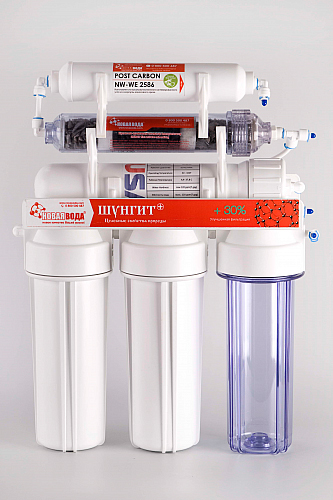 Шестиступенчатая система очистки воды с применением обратноосмотической мембраны и шунгитово-кремневого минерализатора-активатора.