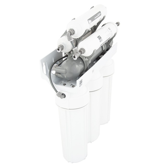 1. Механическая очистка с помощью полипропиленового картриджа на 5 мкм. Картриджем задерживается основная часть механических примесей (ржавчина, песок, осадок и т.п.) 2. Сорбционная очистка с помощью угольного прессованного картриджа. Он удаляет из воды хлор и органические примеси. 3. Механическая очистка с помощью полипропиленового картриджа на 1 мкм. Картридж доочищает воду от оставшихся механических примесей. 4. Основная очистка с помощью мембраны обратного осмоса на 75 GPD. Мембрана удаляет все загрязнения в воде, вплоть до бактерий и вирусов. Поэтому можно быть уверенным в качестве воды, которую Вы будете пить. 5. Угольный постфильтр. Доочищает воду непосредственно перед употреблением. Вода после накопительного бака проходит через угольный постфильтр, благодаря чему корректируется вкус и запах воды. 6. Минерализатор. Картридж содержит природный минерализующий доломит. Насыщает воду полезными минералами, повышает уровень pH воды, улучшает ее вкус. 7. Биокерамический картридж. Внутри находятся керамические шарики из природного минерального турмалина, который вызывает резонанс среди воды и органических молекул. FIR-лучи активируют обмен веществ, устраняют отрицательные ионы, обеспечивая естественные способности к повышению иммунитета организма. Корректируется уровень рН воды. Мембрана на 75 GPD позволяет получать до 12 л в час чистой питьевой воды. А наличие пластикового накопительного бака на 12 л (рабочий объем 8 л) позволяет иметь постоянно чистую воду в запасе. Система укомплектована двойным питьевом краном для получения отдельно очищенной воды (для приготовления пищи), а отдельно для воды с минералами (для питья). Сроки замены картриджей в системе Platinum Wasser:Первые три картриджи предфильтрации необходимо менять в среднем 1 раз в 4-6 месяцев, угольный постфильтр - 1 раз в год, мембрану обратного осмоса - 1 раз в 2-3 года. Все сменные картриджи имеют стандартный размер и при замене можно использовать картриджи любых производителей. Нижние колбы имеют по две уплотнительные резинки и двойные ребра жесткости, что гарантирует надежность системы. Все пластиковые комплектующие являются экологически безопасными и не содержат BPA.