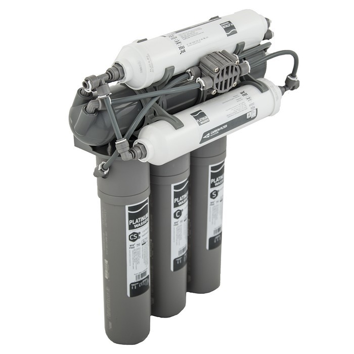 Platinum Wasser NEO 7 - высококачественная компактная система обратного осмоса от немецкого производителя. Система - шестиступенчатая с минерализатором, устанавливается под мойкой и выводится на отдельный небольшой двойной кран для питьевой воды (очищенная и минерализированная). Тип картриджей - быстросъемный Twist-in. Platinum Wasser - это новый фильтр от известного немецкого бренда Bluefilters. Фильтры Platinum Wasser серии Ultra производятся в Европе с использованием комплектующих наивысшего качества. После данной системы воду можно пить без кипячения. Приготовленная еда, чай, кофе после фильтрованной воды будет намного вкусней. А при кипячении на чайнике никогда не будет накипи. Система Platinum Wasser NEO 7 имеет 7 ступеней очистки: