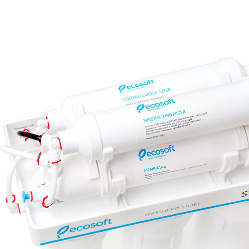 Некоторые пользователи фильтров обратного осмоса опасаются, что после настолько глубокой очистки вода лишается полезных для организма микроэлементов. Однако до 90% необходимых человеку минералов поступают с пищей, а не с водой. BPA FREE. Фильтры обратного осмоса Ecosoft производятся из первичного пищевого материала (полипропилен). В производстве этих пластмасс бисфенол не используется, а их состав соответствует Директиве ЕС «Предметы, используемые для контакта с продуктами питания». ОБСЛУЖИВАНИЕОбслуживание фильтра требует периодической замены фильтрующих элементов. Мы стремимся упростить вашу жизнь, поэтому вовремя напомним о необходимости замены картриджей. Чистая вода без лишних забот — это возможно с Ecosoft. Периодичность замены картриджей- картриджи предварительной очистки воды — каждые 3 месяца