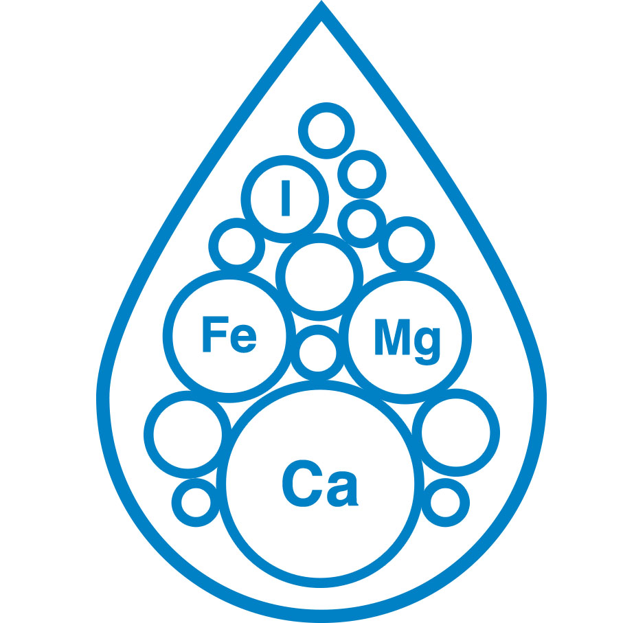 - Оптимальное и постоянное количество минералов в воде — 55‒65 мг/л. Мы посмотрели, как вода проходит через минеральные породы в природе, и повторили этот процесс в фильтре.